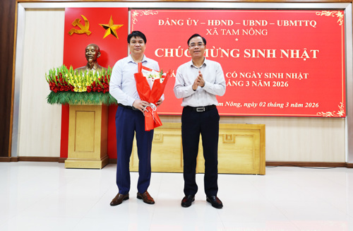 Tại lễ chào cờ, xã Tam Nông cũng đã tổ chức chúc mừng sinh nhật cho các cán bộ, công chức, viên chức và người lao động có ngày sinh trong tháng. Đây là một nét đẹp văn hóa công sở được tổ chức thường niên hàng tháng của xã Tam Nông.