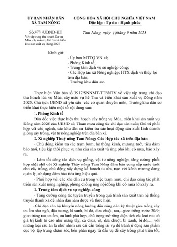 UBND xã Tam Nông tập trung chỉ đạo thu hoạch lúa vụ Mùa, cây màu vụ hè Thu và triển khai sản xuất vụ Đông năm 2025.