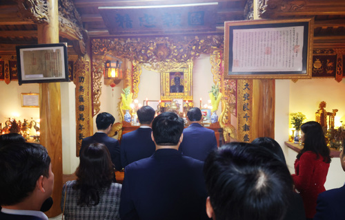 Dưới sự chủ trì của đồng chí đồng chí Quách Hải Lý - Bí thư Đảng ủy, Chủ tịch HĐND xã, đoàn đã đến dâng hương tại hai địa điểm di tích quan trọng: Đền thờ danh nhân Nguyễn Quang Bích và Cột cờ Hưng Hóa; Di tích lịch sử Đền Nhà Bà - Đền Mẫu.