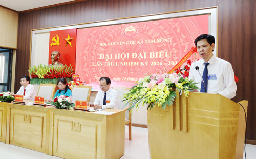 Ngày 14/4/2026, Hội Khuyến học xã Tam Nông đã long trọng tổ chức Đại hội đại biểu lần thứ I, nhiệm kỳ 2026 - 2031. Đây là sự kiện có ý nghĩa quan trọng nhằm đánh giá phong trào khuyến học nhiệm kỳ qua và kiện toàn tổ chức Hội sau khi sáp nhập các đơn vị hành chính. Dự và chỉ đạo Đại hội có: Nhà giáo ưu tú Nguyễn Thị Thành Chung - Phó Chủ tịch Hội Khuyến học tỉnh Phú Thọ; Đồng chí Nguyễn Tuấn Ngọc - Phó Bí thư Thường trực Đảng ủy xã; Đồng chí Nguyễn Khắc Long - Ủy viên BTV Đảng ủy, Chủ tịch Ủy ban MTTQ xã. Các đồng chí Thường trực HĐND, lãnh đạo UBND, lãnh đạo các phòng, ban, tổ chức chính trị - xã hội và 60 đại biểu tiêu biểu đại diện cho hơn 6.000 hội viên trên toàn xã.